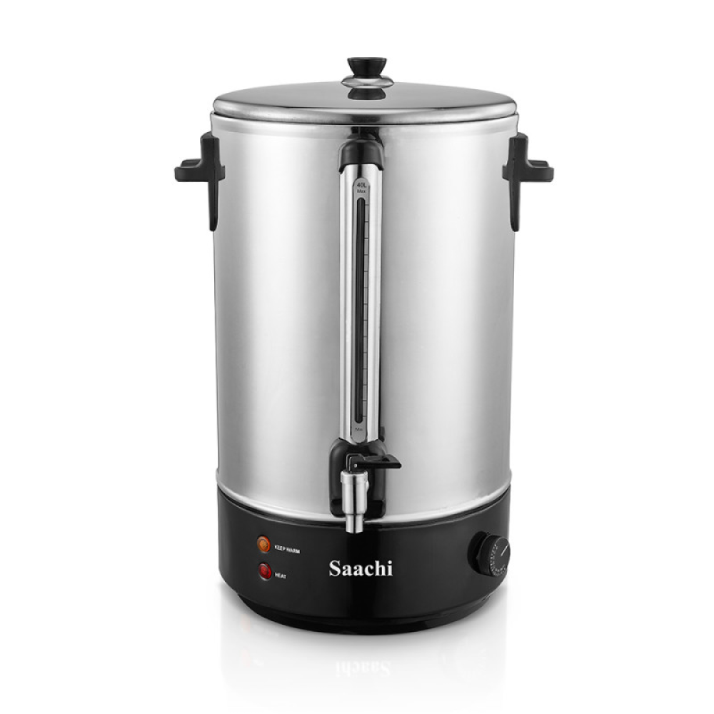 غلاية ماء كهربائية سعة 40 لتر فضي مصنوعة من فولاذ عالي الجودة تجمع بين المتانة والأداء العالي لتوفير مياه ساخنة بسرعة وكفاءة مناسبة للمطاعم والمكاتب والأماكن التي تحتاج إلى كميات كبيرة من الماء الساخن